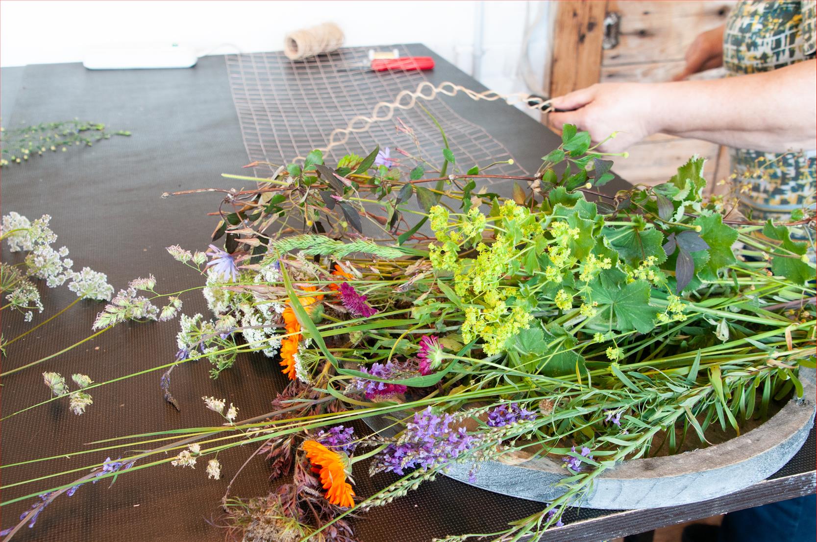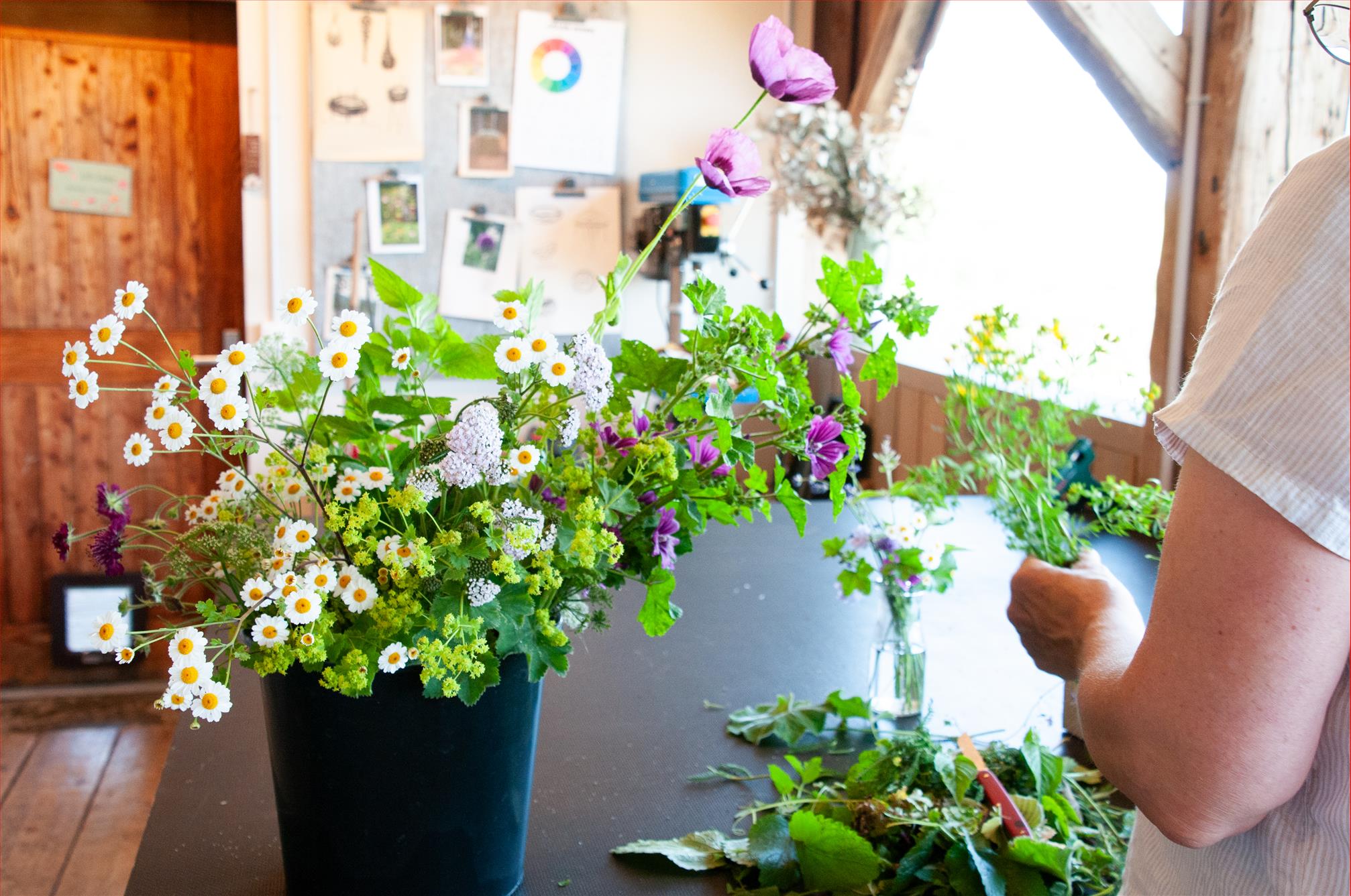 Die Natur strotzt vor Kraft und Energie in diesen Tagen, es blüht, flattert und summt, das Leben im Garten pulsiert und platzt vor lauter Farben und Freude fast aus allen Nähten. Ich liebe diese Zeit der Fülle. An diesem Kurstag schöpften wir daraus und sammelten unsere Werkstoffe im Garten, direkt hinter dem Atelier. Wir lernten verschiedene Techniken und Gestaltungsmöglichkeiten kennen, um eben dieser Kraft Ausdruck zu verleihen.